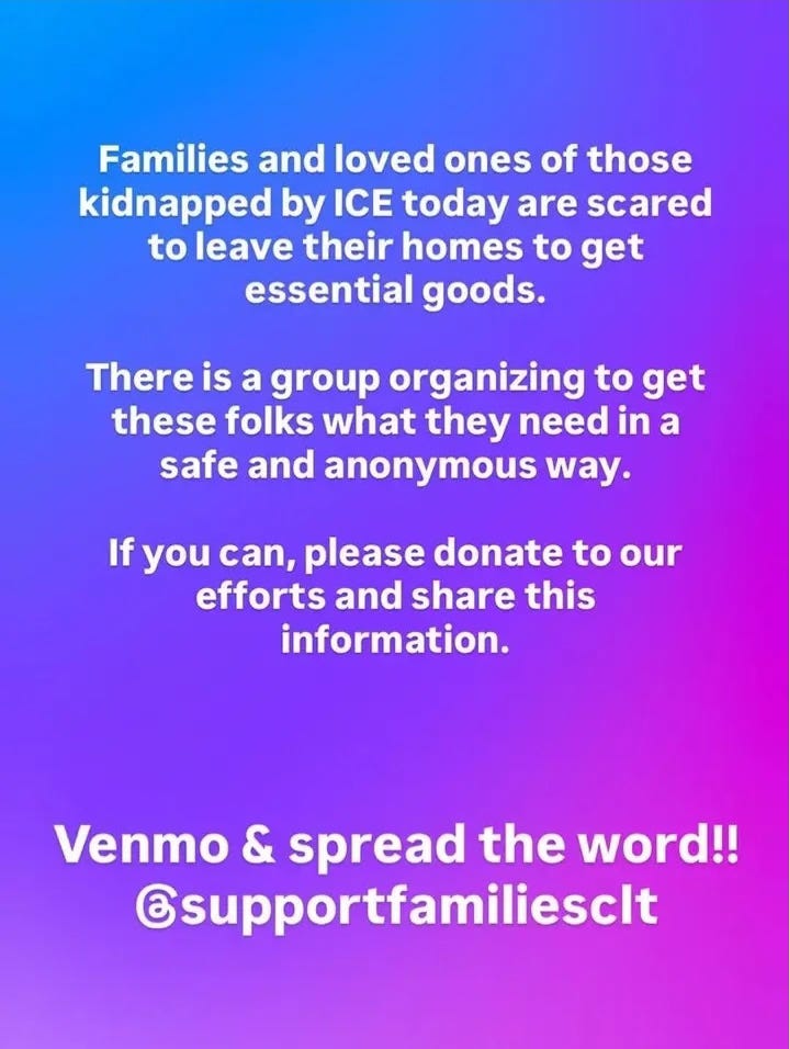But then, early this morning, I got a text message from a friend in Charlotte—the latest epicenter of ICE’s brutality. He told me ICE was dispatching from staging areas around the city and that he and members of his church were out on community patrols, trying to protect their neighbors from being disappeared into unmarked vehicles by masked agents.