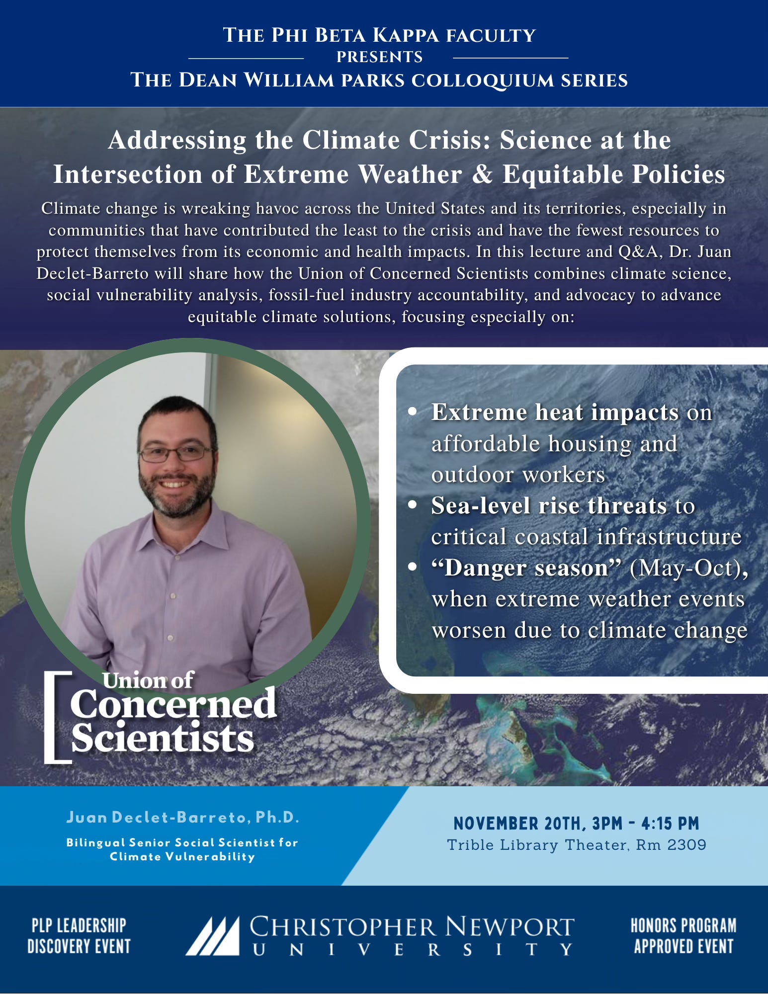 “Addressing the Climate Crisis: Science at the Intersection of Extreme Weather and Equitable Policies.” Dr. Declet-Barreto is the Bilingual Senior Social Scientist for Climate Vulnerability at the Union of Concerned Scientists. Free and open to the public.