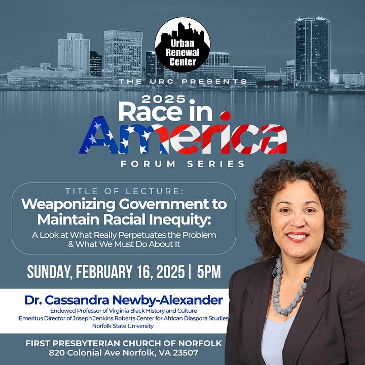 I’m honored to be featured as a part of the Race in America Forum Series hosted by the First Presbyterian Church of Norfolk. The amazing Dr. Cassandra Newby-Alexander will kick the series off at 5pm on this Sunday, February 16. My lecture will be at 5pm on Sunday, February 23. Both events are free and open to the public. Click here to register in advance, or just show up the day of - I hope to see you there.